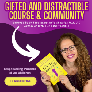 Our friend and colleague, Julie Skolnick, is launching her Gifted & Distractible Course for parents of twice exceptional children as they read through her award-winning book, Gifted and Distractible.